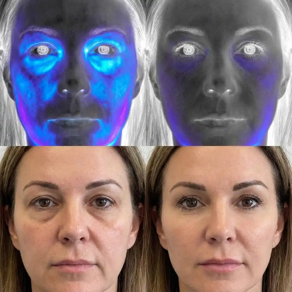 Der Grünlicht-Modus unterstützt einen ebenmäßigeren Hautton, indem er dazu beiträgt, überschüssige Pigmentierung optisch auszugleichen und das Erscheinungsbild von dunklen Stellen zu mildern, für ein klareres, harmonischeres Hautbild.